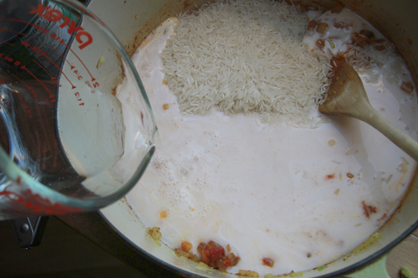 Now add in the coconut milk & water. You’re on your way. Boil it on the stove.