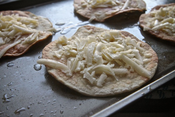 After the tortillas have browned, add the cheese & put back in the oven to melt.