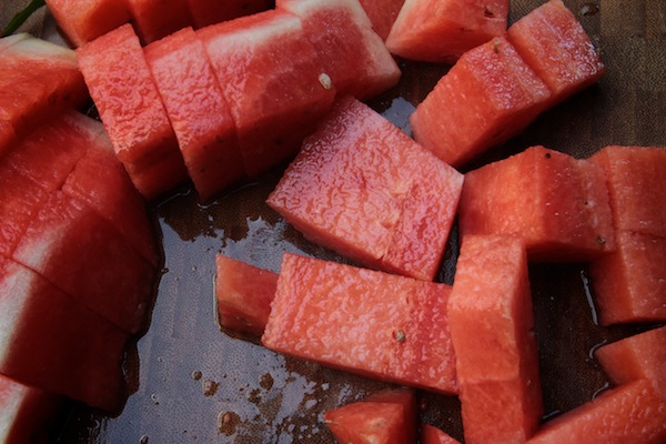 Chop the watermelon. You’re lucky I didn’t eat all of this watermelon. You would have no recipe.