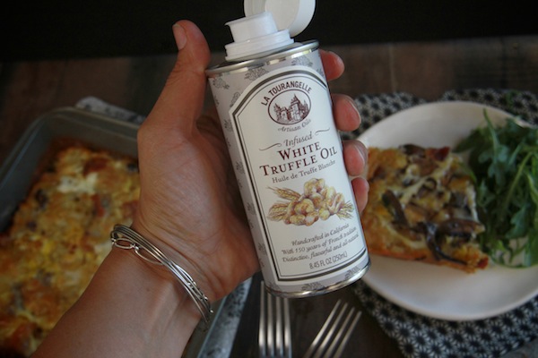 Now we bust out the white truffle oil. You could totally use black truffle too.
