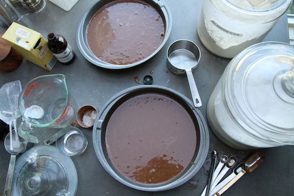 Bake the cakes, side by side for 35-40 minutes, until a toothpick inserted in the center comes out clean. Cool completely in the pans on a wire rack.
