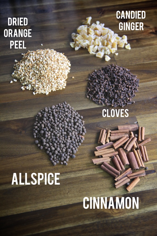 With the holidays coming up, I thought it would be nice to share a little recipe for DIY mulling spices. Most of the time I just eyeball it, but if I’m giving it as a gift, I make a large batch. In my version I add dried orange peel and a little candied ginger. It adds a nice spicy sweetness to whatever you are mulling (can we use this as a verb?). Let’s mull it over (had to).