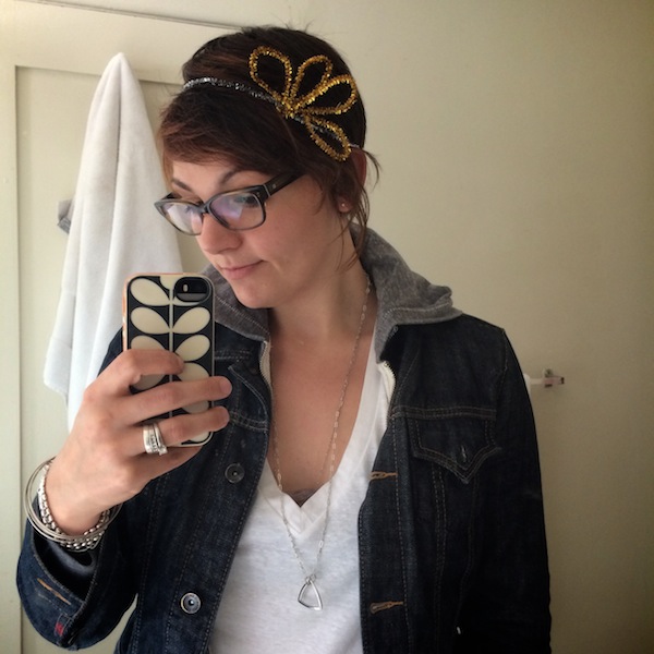 Pipe cleaner fascinator at our friend Whitney’s house. She had a mardi-gras themed party for Joy.