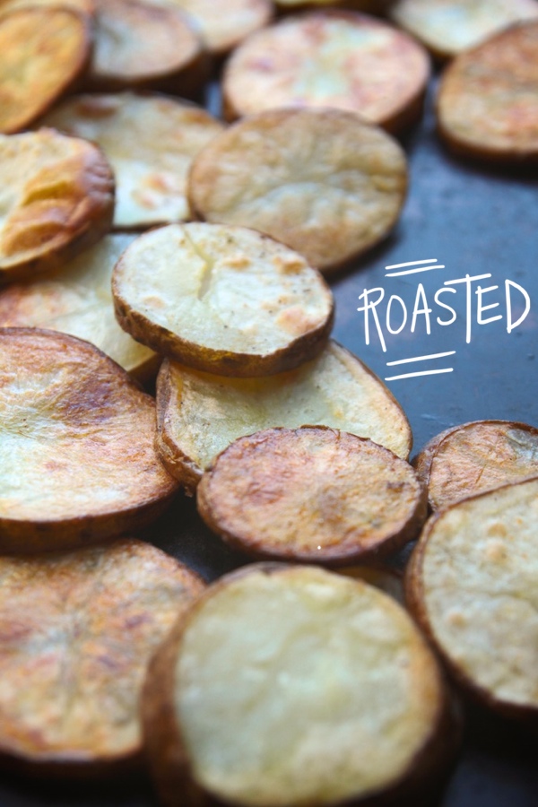 Using a mandolin or a knife, thinly slice the potatoes into 1/2 inch thick rounds. Put them on the prepared baking sheets in a single layer. Drizzle with the olive oil and sprinkle with half of the seasoning blend. Bake the potatoes, turning halfway through, until golden brown and crispy, 25 to 30 minutes.
