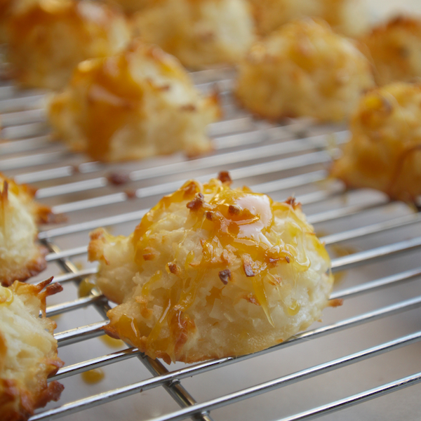 Remove from the oven and let the sheet rest on a cooling rack, leaving the macaroons on the sheet until they’re cool enough to pull off (about 3 minutes). Transfer macaroons to a cooling rack and let cool completely.