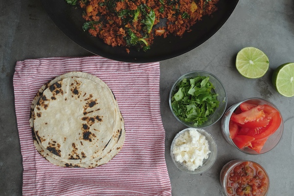 The kale adds a little texture to the mix. It’s not super present– which is good because I have a 7 year old to fool. But if you want more kale, by all means GO FOR IT. And if you’re not feeling tacos, put the kale soyrizo blend over rice and make yourself a burrito bowl. A tasty weeknight meal is right at your fingertips!