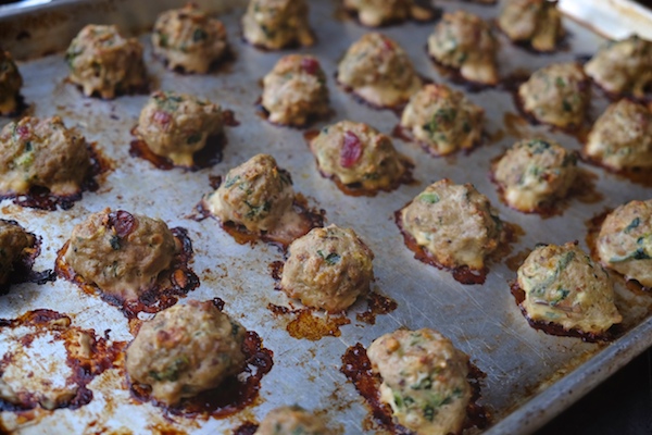 Scoop out meatballs with a 1 inch cookie scooper. Place on a greased baking sheet.