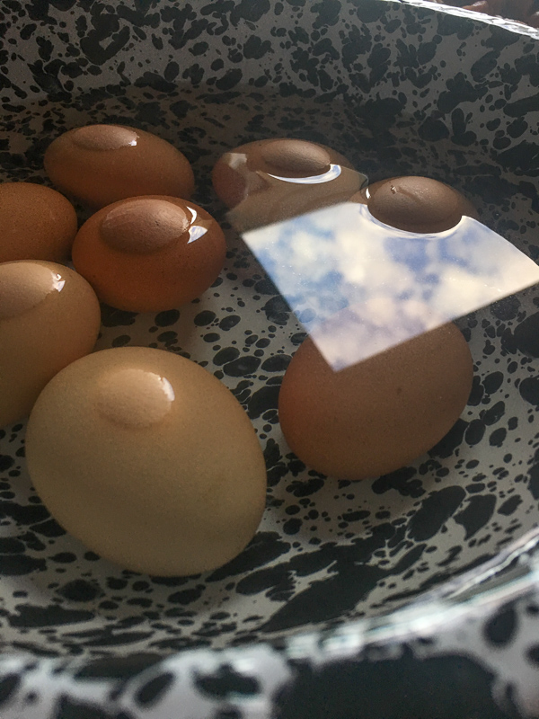 A patch of sky in my hard boiled egg ice bath.