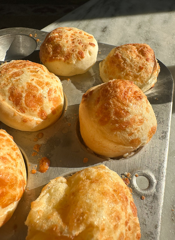 How do we describe the texture? They are light and fluffy like a popover but kinda chewy like if grilled cheese and mochi had a baby. These are definitely worth keeping a supply of tapioca flour in your pantry.