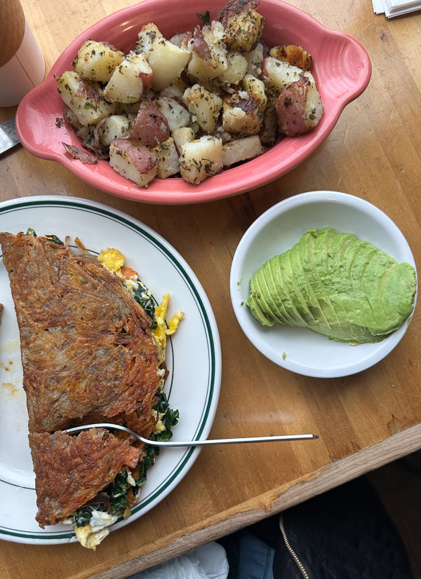 Burger salad with tots. This iteration had bacon on top. YUM.