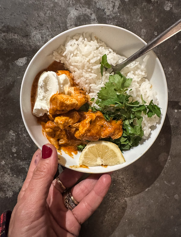 Chicken tikka masala for the win! I use the base from Trader Joe’s and add coconut milk to it.